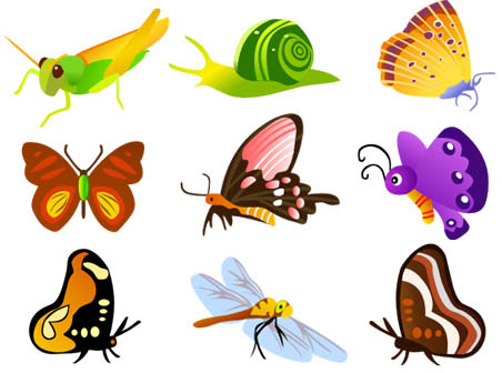 나비, 잠자리, 달팽이, 메뚜기가 일러스트로 작업되어 있으며 ai 원본 파일을 다운 받을 수 있다.