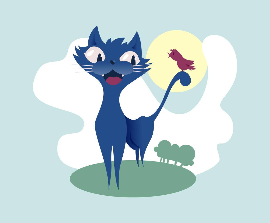 고양이일러스트, 고양이와새이미지, 동물일러스트, 무료일러스트로 사용할 수 있다.