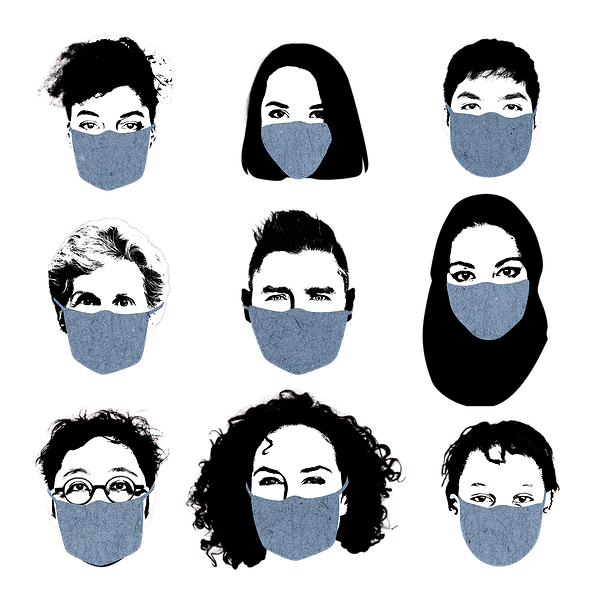 클립아트로 사용하기 좋은 마스크를 쓴 사람들 이미지이다.