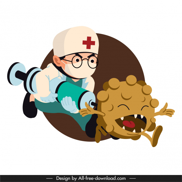 Corona epidemic banner funny doctor virus cartoon sketch Free vector