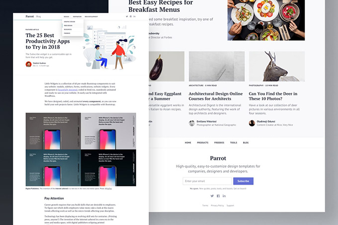 [Freebie] Bootstrap Blog Template – Parrot: 4 Pages, Sketch