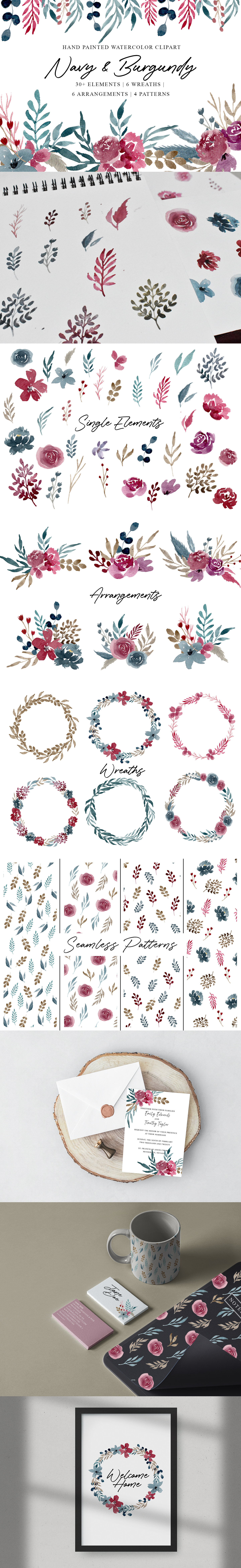 FREE NAVY & BURGUNDY WATERCOLOR GRAPHICS