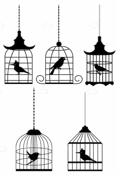 DOWN : 5 Silhouette Birds in Cages