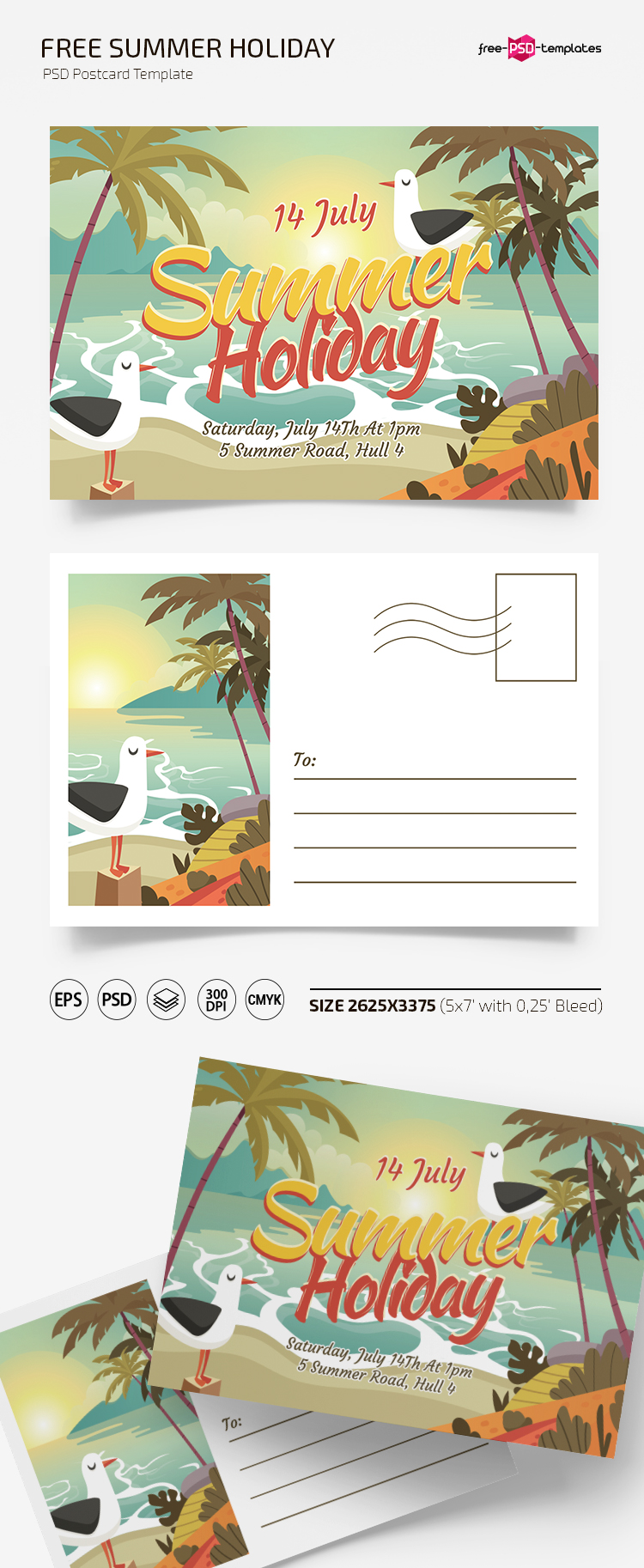FREE SUMMER HOLIDAY POSTCARD TEMPLATES IN PSD + EPS
