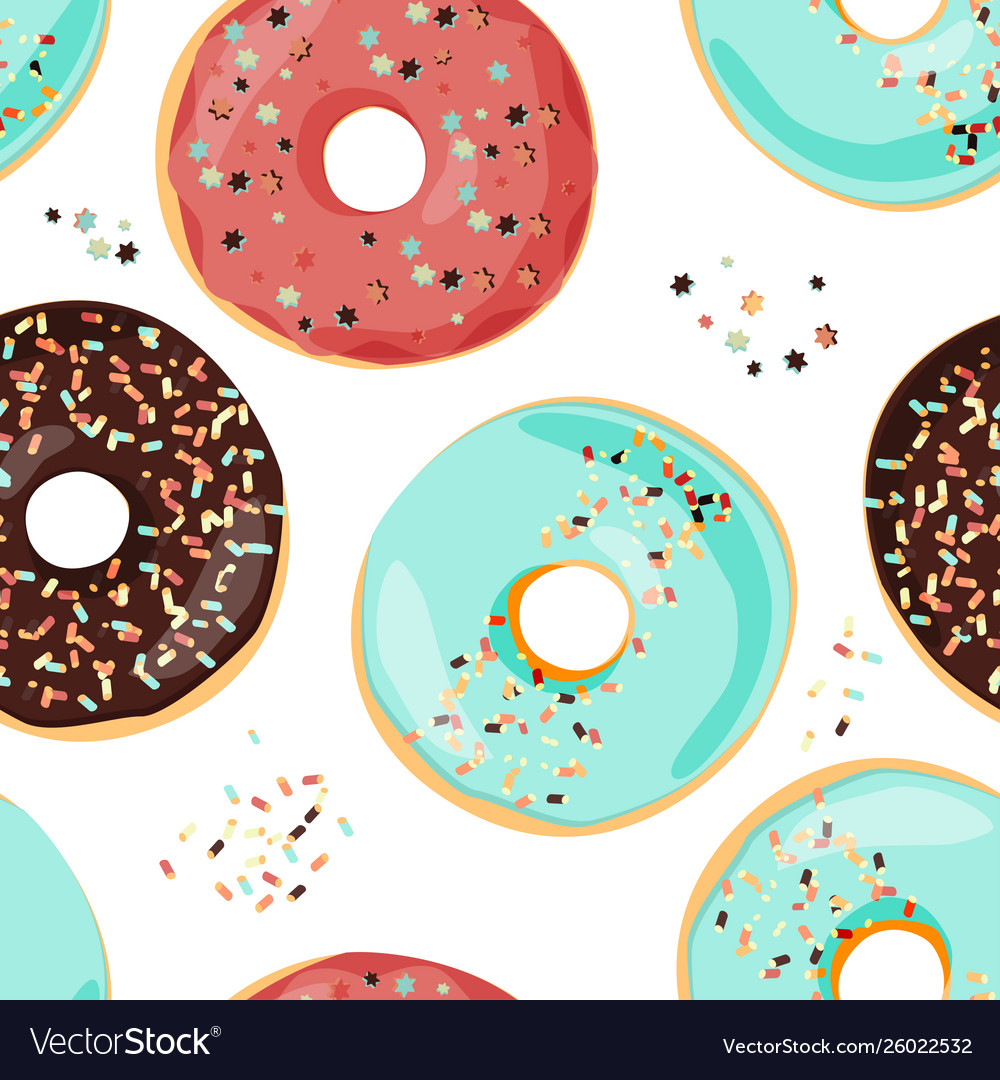 Seamless colorful donut pattern sweet cartoon vector image