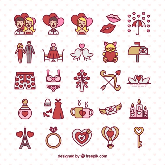 Hand drawn valentine day icons pack Free Vector