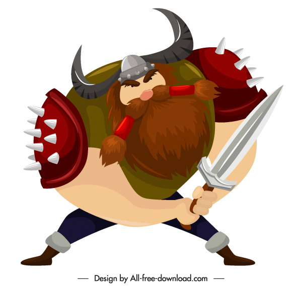 Viking Knight Icon Sword Weapon Sketch Cartoon Character