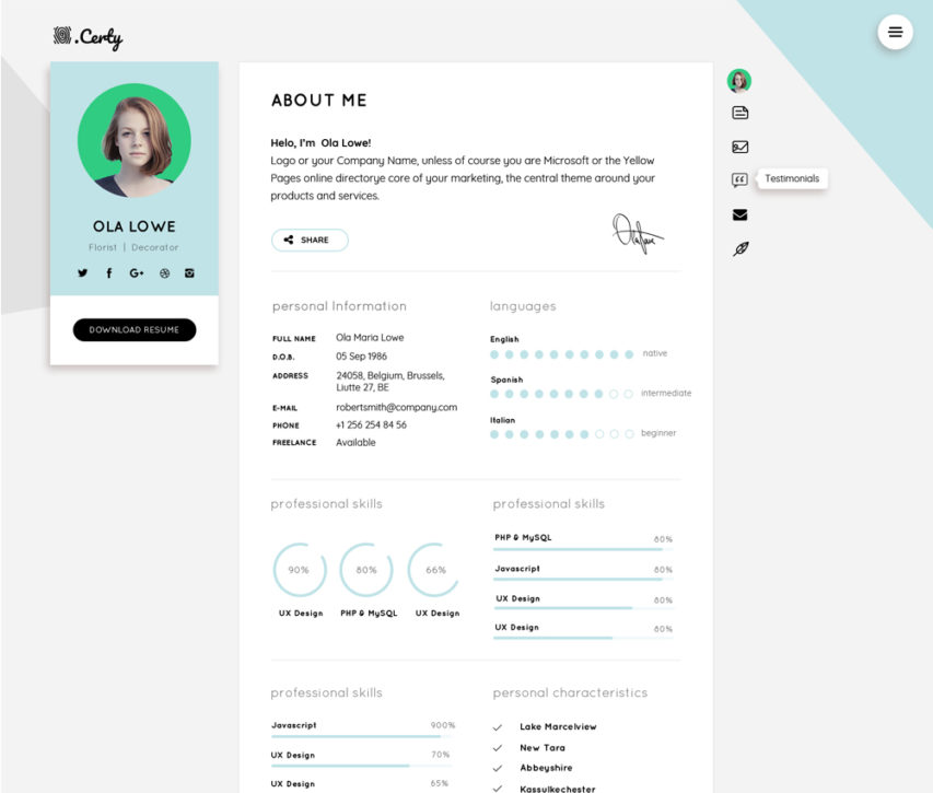 Resume CV Website Theme Template Free PSD