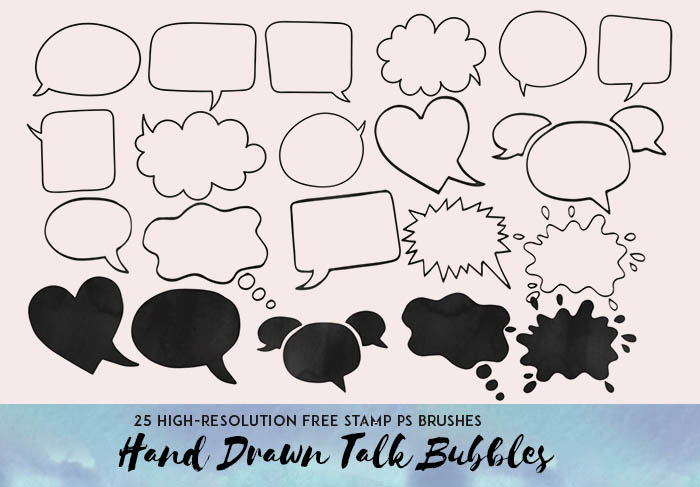 25 High-resolution Hand-drawn Talk Bubbles as Photoshop Brushes