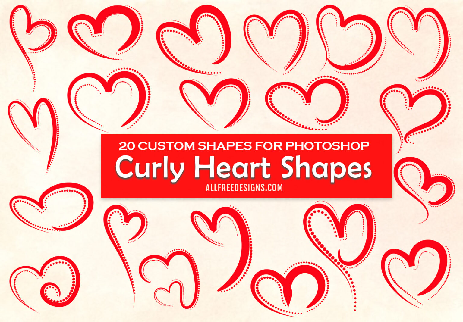Curly Heart Shapes: 20 Vector Custom Shapes for Photoshop