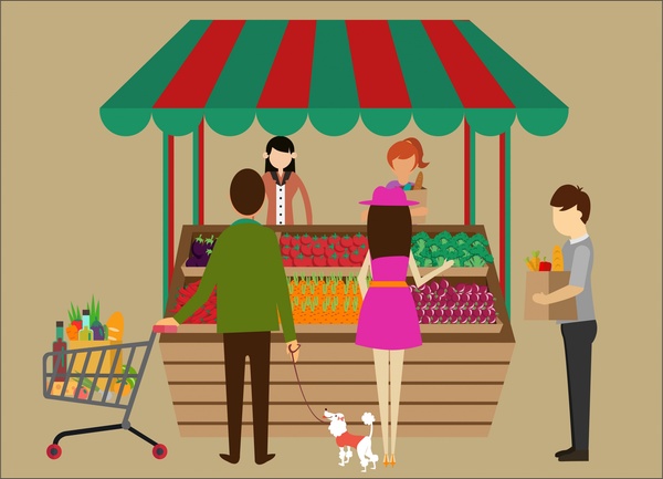 shopping me clerks and customers at food store free vector