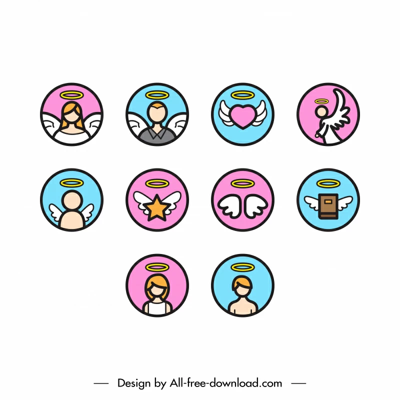 Angel icon sets flat handdrawn circle isolation FREE
