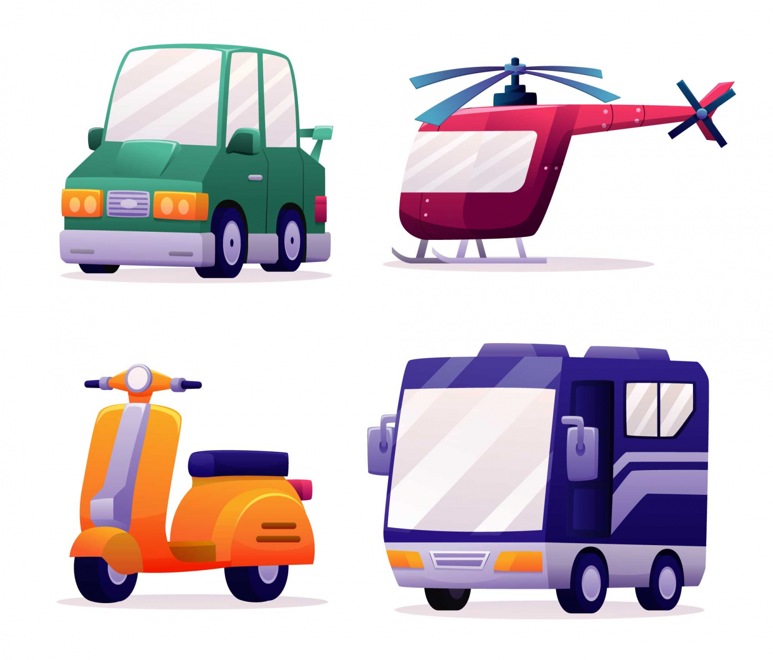 무료로 사용할 수 있는 자동차, 헬기, 오토바이, 버스 일러스트 이미지이다.