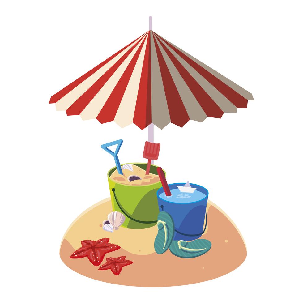 summer sand beach with umbrella and sand bucket toy Free Vector