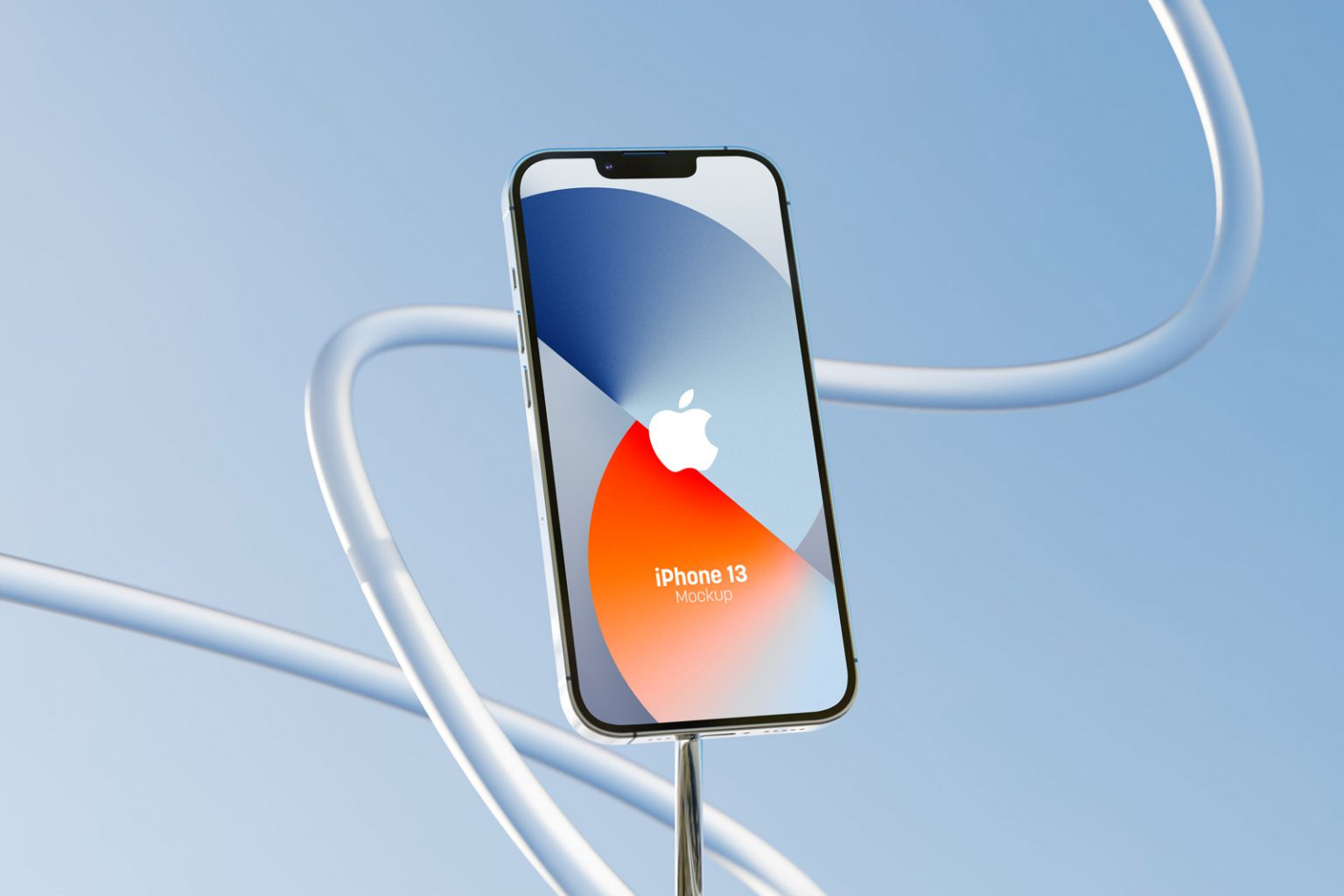 무료로 사용할 수 있는 아이폰 13 핸드폰 포토샵 목업 이미지이다 .