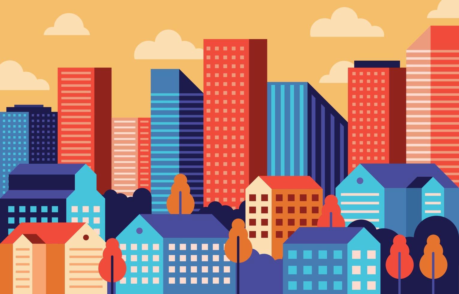 무료로 사용할 수 있는 도시, 빌딩 일러스트 이미지이다.
