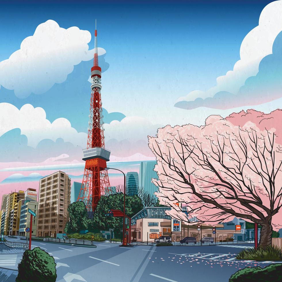일본일러스트, 도쿄타워일러스트, 풍경일러스트, 무료일러스트, 다운