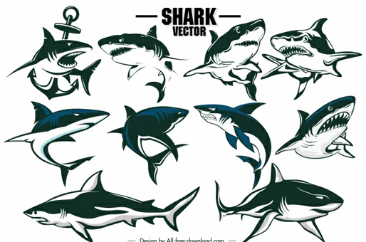 모두 12개의 상어가 손그림 일러스트로 작업되었다