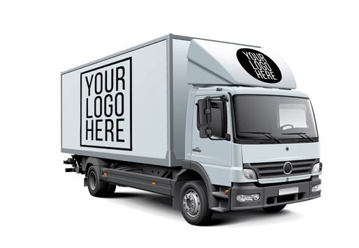 DOWN : White Box Truck Free Mockup