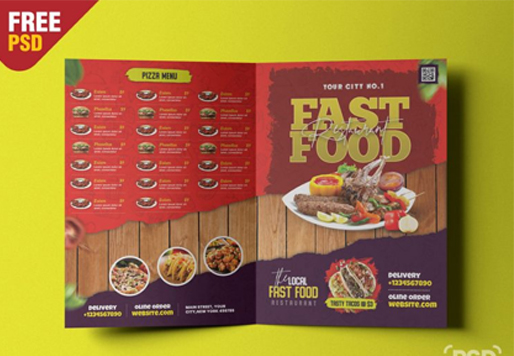 무료로 다운 받을 수 있는 식당, 레스토랑 메뉴 리플렛 디자인 이미지이다 .