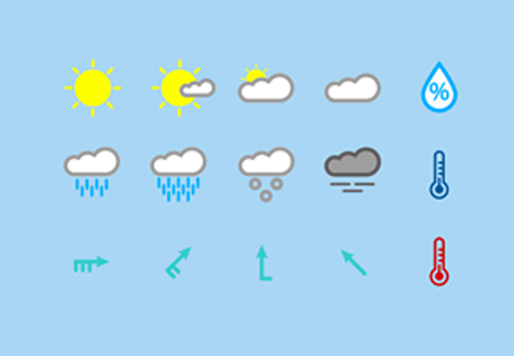 무료로 사용할 수 있는 날씨 일러스트 아이콘 이미지이다. 구름, 태양, 안개, 번개 등의 날씨 관련 아이콘이 작업되어 있다. 수정이 가능한 ai 일러스트 벡터 파일과 png 날씨 이미지를 무료로 다