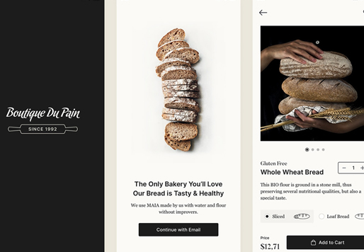 스케치 프로그램으로 만들어진 베이커리 앱 디자인 템플릿이다.