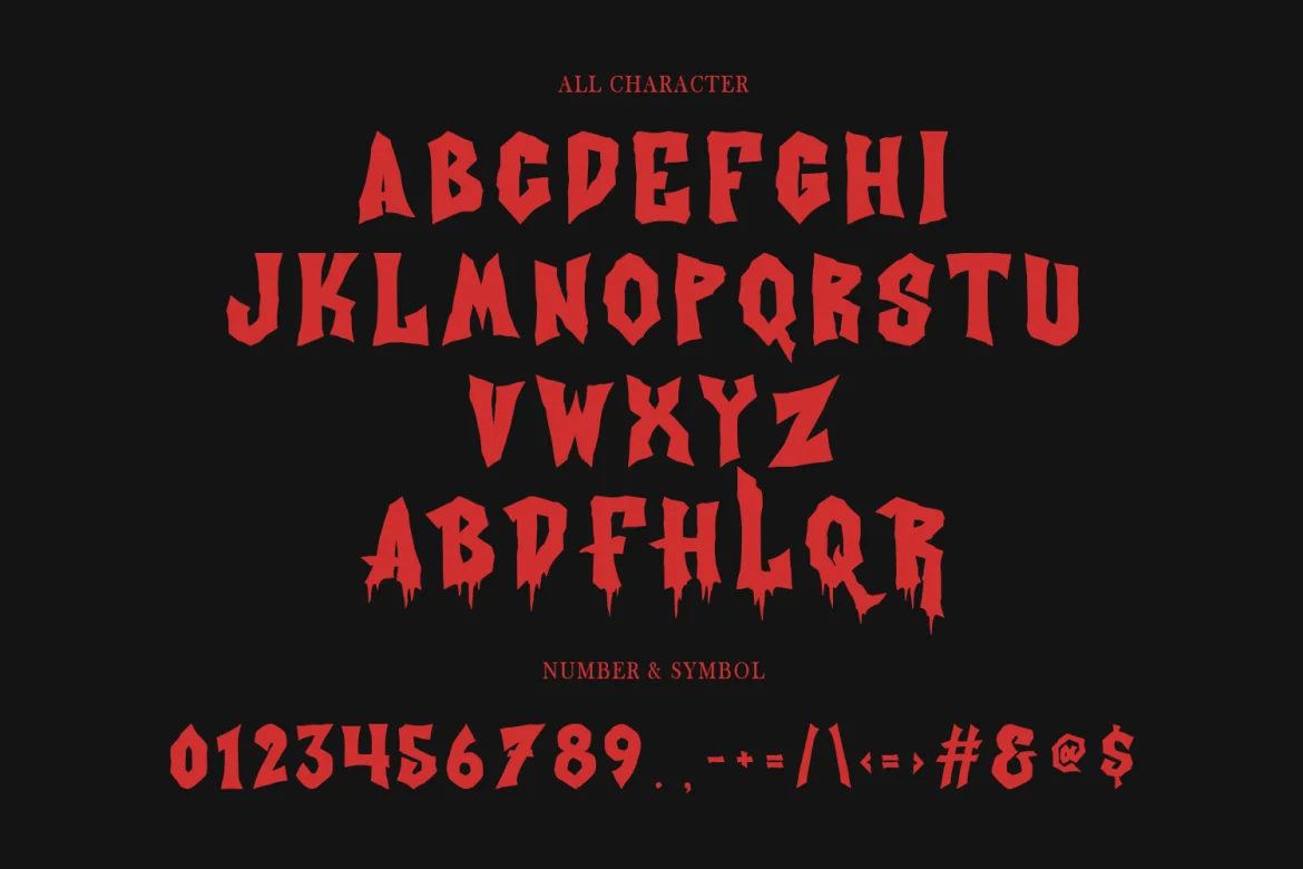 할로윈 폰트, 공포 영화 폰트, 영화 포스터 디자인에 사용하기 좋은 무료 영문폰트이다. 개인적인 용도로 사용할 수 있으며 상업적인 용도로 사용할 경우 별도 협의가 필요하다. otf, ttf 두가지