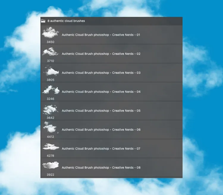 다운받은 포토샵 브러쉬 적용 후 8가지 구름 이미지를 포토샵에서 쉽게 만들 수 있다.