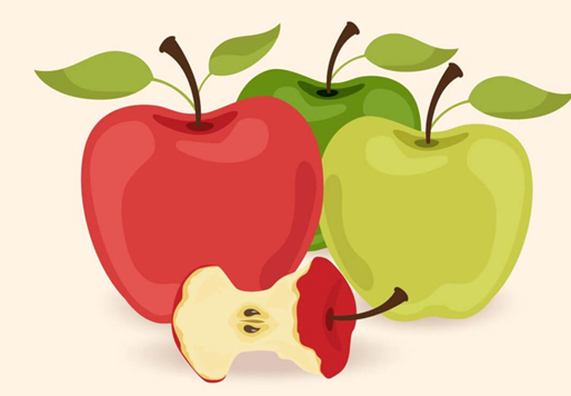 빨간사과 청사과가 일러스트로 디자인되어 있다.