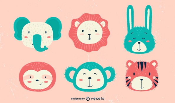 코끼리, 사자, 토끼, 너구리, 원숭이, 호랑이 일러스트가 포함되어 있다.