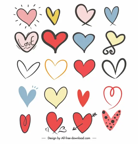 손쉽게 만들어 사용할 수 있는 하트 일러스트 6개이다. 일러스트에서 색상과 디자인을 쉽게 변경할 수 있으며 하트 이미지 개별 일러스트를 다운받을 수 있다. 하트 일러스트 만들기, 하트 일러